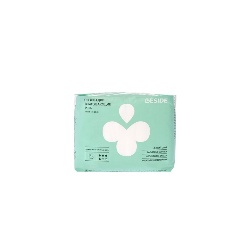 Прокладки Beside имеют несколько уровней впитывания: Extra – 28,5 см, 4 капли, впитывают от 400 мл жидкости, Maxi – 36 см, 5 капель, впитывают от 500 мл, Plus – 42 см, 6 капель, от 600 мл.