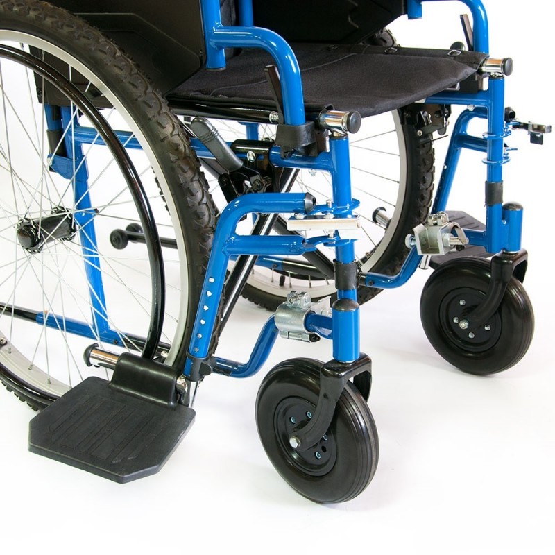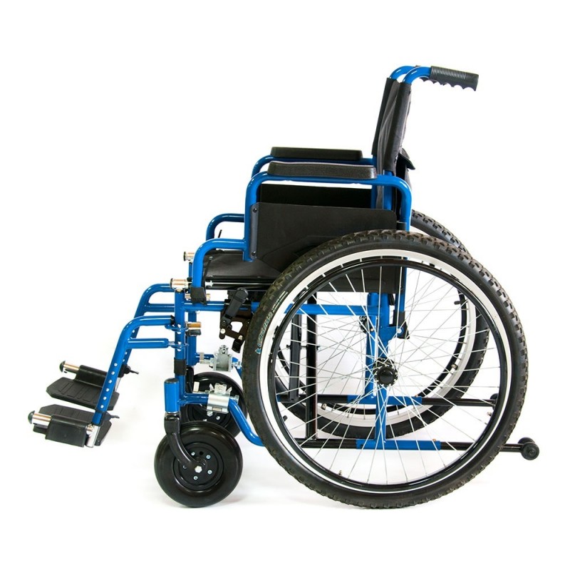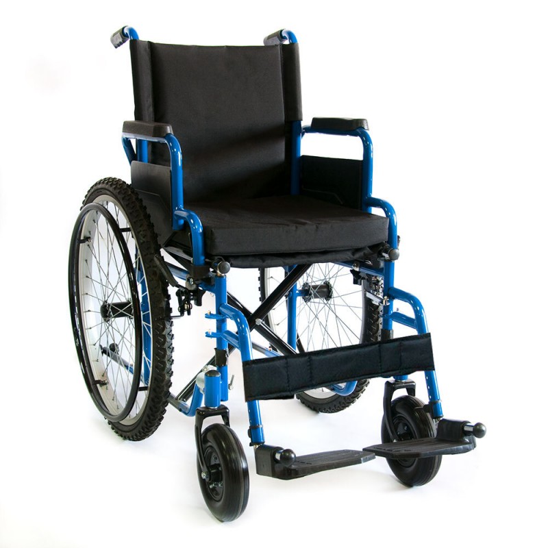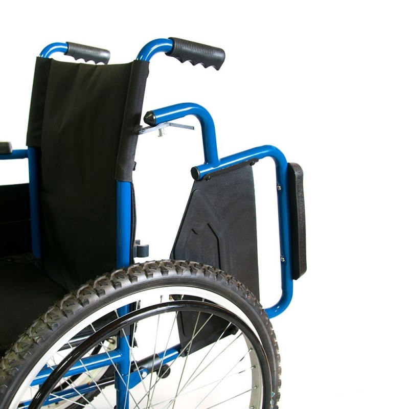 Кресло-коляска инвалидное с ручным приводом предназначена для передвижения больных и инвалидов с частичной потерей функций опорно-двигательного аппарата преимущественно на открытых площадках (на улице), как самостоятельно, так и с помощью сопровождающего лица. Коляска оснащена задними пневматическими колесами с глубоким протектором для лучшего зацепления за поверхность дороги, позволяющим преодолевать незначительные расстояния в плохих погодных условиях (дождь, грязь, снег). Кресло-коляска имеет складную конструкцию по вертикальной оси. Рама коляски стальная с полимерным покрытием.