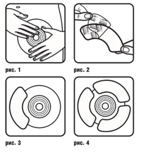 Удалите защитное покрытие с полукольца СОФАЛЬ. Наклейте полукольцо СОФАЛЬ внахлест на кольцо однокомпонентного кало- или уроприемника или пластины БИНАЦЕЛ. При необходимости наклейте второе и третье полукольцо таким же образом.