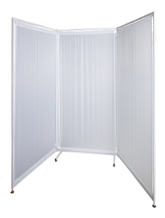 Каркас медицинских ширм из профильной стальной трубы 15*15*1,5, а наполнитель — нетканый материал. Секции имеют одинаковый размер. Боковые секции могут вращаться относительно центральной секции на 360 градусов.