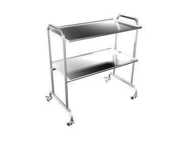 Столик имеет 2 вынимающиеся полки из листовой нержавеющей стали 0,8 мм с бортиками 16 мм, размеры — 755x395 мм.