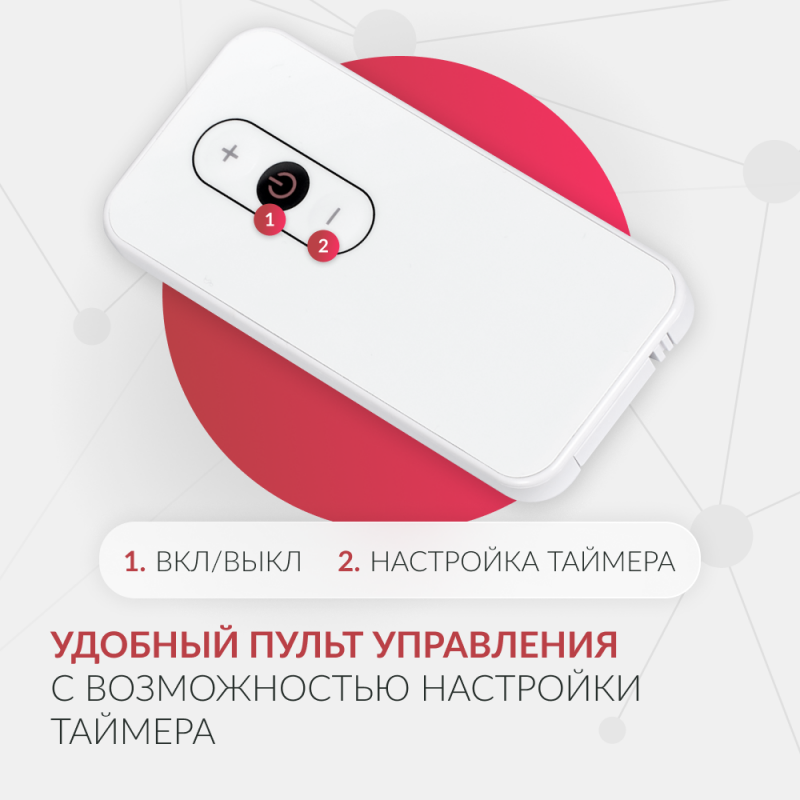 Таймер позволяет задать продолжительность процедуры от 1 до 120 минут. По истечении заданного времени прибор отключается автоматически.