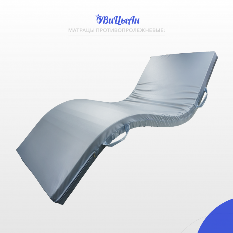 Матрац предназначен для людей с нарушением функций опорно-двигательного аппарата и нервной системы в целях предотвращения пролежней. Профилактика пролежней при длительном лежании. Обеспечение максимального комфорта. Комплексная реабилитация лечения пролежней. Для комфортного сна. Имеет направление положения.Уникальная конструкция матраца имеет в основании трапецевидный профиль, который формирует независимые конусы, эффективно распределяющие давление тела на поверхности ложа кровати. Поперечный профиль на нижней стороне матраца, позволяет ему принимать форму ложа, 1-2-3-4-секционной кровати. В зонах повышенного риска образования пролежней расположены ниши с гелевыми вставками 40*40 см.На верхней стороне, расположен слой натурального латекса, выступающий влагозащитным барьером, в то же время снижая чуствительность к разной жесткости наполнителя. Влагонепроницаемый съемный чехол матраца изготовлен из мембранной, синтетической ткани (полиэстер 100%) с влагонепроницаемым, паропроницаемым, полиуретановым покрытием плотностью 150 г/м² . На чехле по центру торцевой части вшита молния.1. Благодаря уникальной конструкции матрац оказывает хорошую поддержку тела во время сна и создает все условия для полноценного лечения.2. Ячейки наполнителя не слипаются, независимые конусы даже при максимальой нагрузке на них оставляют между собой воздушные каналы, создавая вентиляцию, что значительно увеличивает срок эксплуатации.3. Съемный чехол легко снимается, поэтому осуществлять надлежащий уход и своевременную обработку, дезинфекцию, стирку и сушку (в зависимости от загрязнения) матраса можно многократно. 4. Не имеет швов на рабочей поверхности5. Молния защищена влагонепроницаемым клапаном6. Благодаря водонепроницаемому покрытию, жидкость с поверхности чехла легко удаляется и не проникает во внутрь изделия.7. Специальная антибактериальная обработка, защищает от распространения бактерий.8. Эластичность чехла позволяет не вызывает ответного давления и способствует равномерному распределению массы тела на поверхности ложа.9. Антискользящая поверхность препятствует скатыва