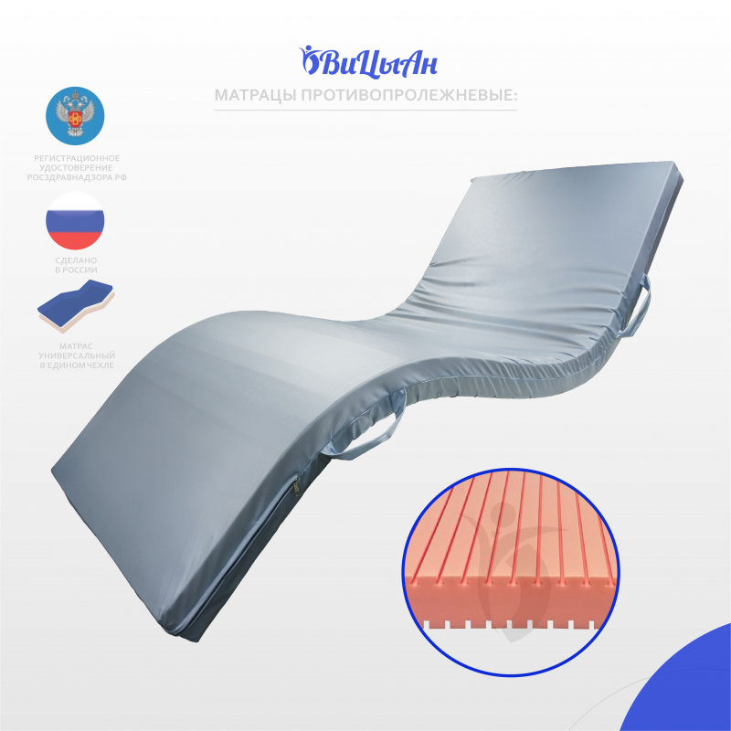 Матрац предназначен для людей с нарушением функций опорно-двигательного аппарата и нервной системы в целях предотвращения пролежней. Профилактика пролежней при длительном лежании. Обеспечение максимального комфорта.Комплексная реабилитация лечения пролежней. Для комфортного сна.