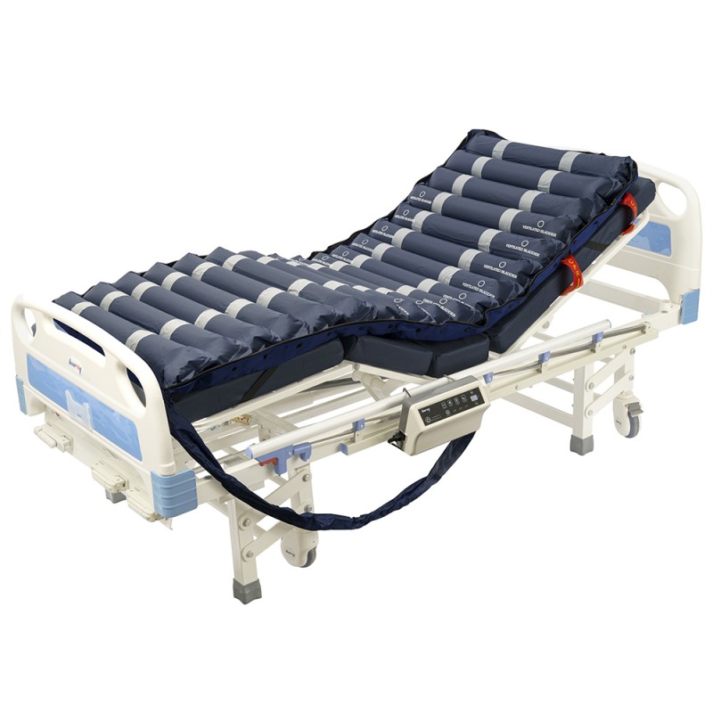 Матрас состоит из отдельных трубчатых секций, которые поочередно наполняются и сдуваются под действием компрессора. Это обеспечивает динамическое перераспределение давления, создает мягкий массажный эффект и способствует снижению нагрузки на уязвимые участки тела. Длительность полного цикла 6/9/12 мин. (регулируется на компрессоре).