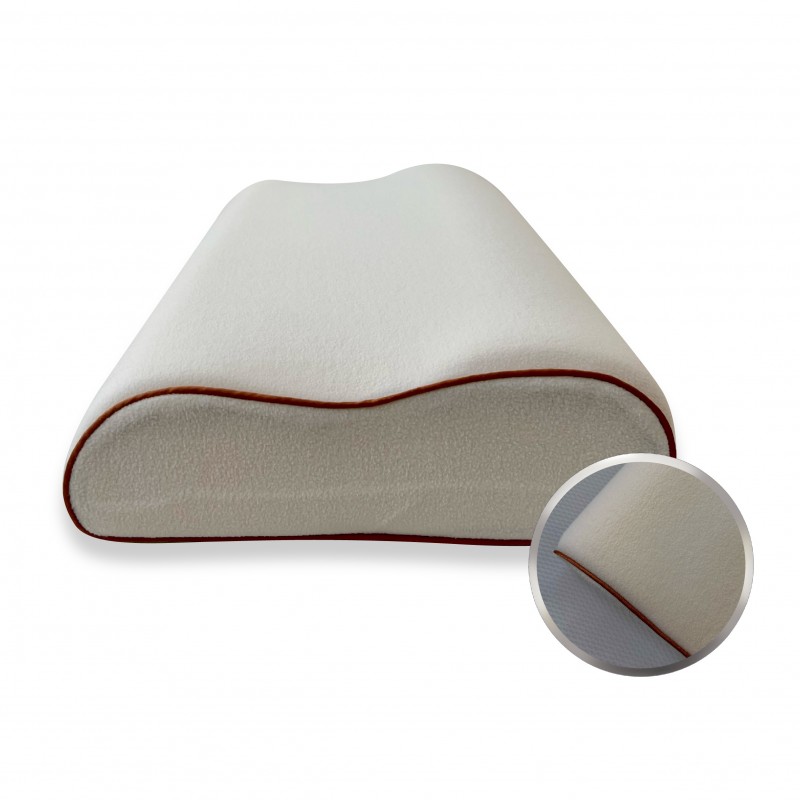 Подушка ортопедическая, анатомической формы, р. 49*30*10/7см. Способствует физиологически правильному положению головы во время сна.Изготовлена из вязкоэластичного пенополиуретана. Пенополиуретановый вязкоэластичный монолитный блок эргономичной формы, плотность 30 кг/м.куб.. Съемный чехол на молнии, изготовлен из флиса. Состав полиэфирное волокно, плотность ткани 200 гр/м2. Внутренний чехол - трикотажная сетка плотность 55г./м.кв.Изделие упаковано в сумку