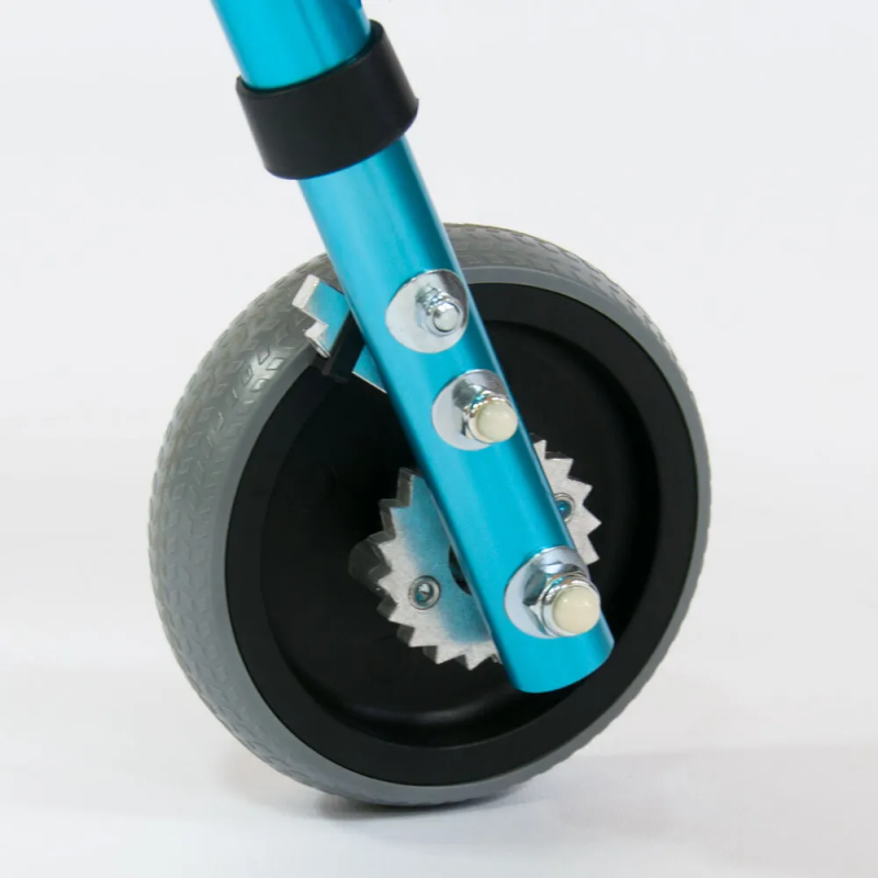 Задние колеса оснащены храповым механизмом (не позволяет ходункам откатиться назад); передние оснащены фиксатором, который блокирует движения колес в стороны и позволяет двигаться только прямо.