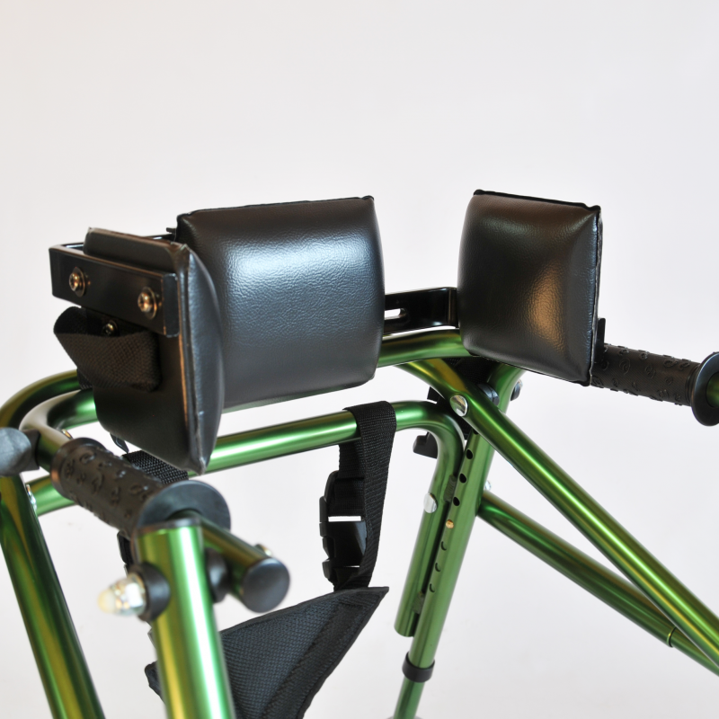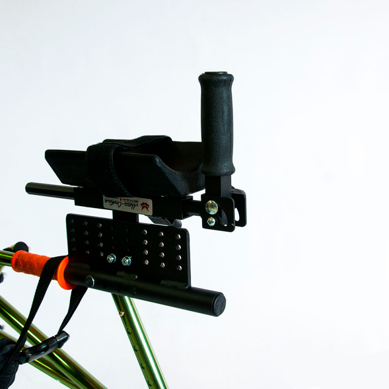 Подлокотные опоры ходунков фиксируют предплечья в удобном положении, позволяя при этом держаться руками за рукоятки с нескользящим покрытием; угол наклона рукояток можно изменять от вертикального до горизонтального положения.